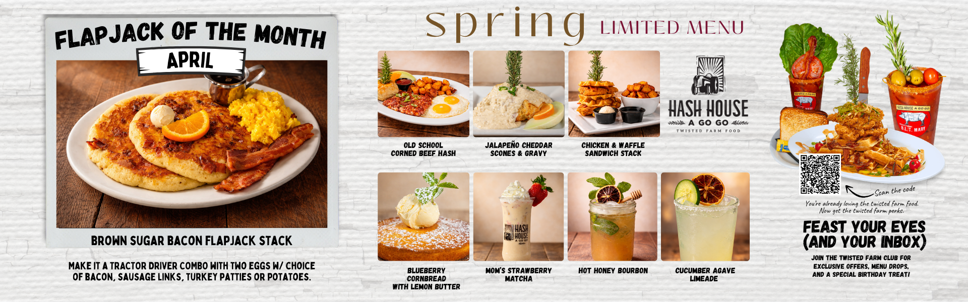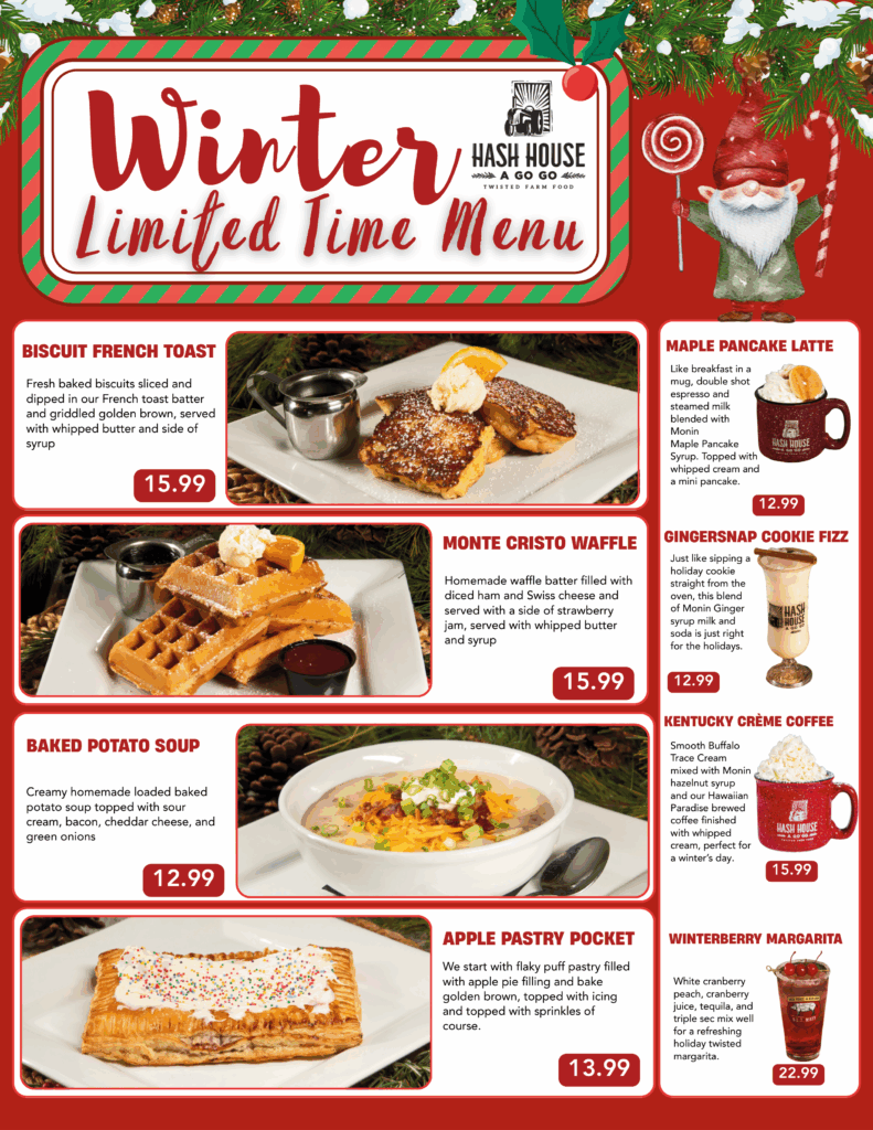 Introducing Hash House A Go Go's dynamic destination at The LINQ! Step into a world of culinary creativity where classic comfort meets a modern twist. Indulge in our signature tractor-sized pancakes, twisted farm favorites, and one-of-a-kind Sage Fried Chicken Benedict, all amidst the vibrant energy of The LINQ. Join us to experience a culinary journey that redefines traditional dining and captures the essence of Las Vegas's vibrant food scene.